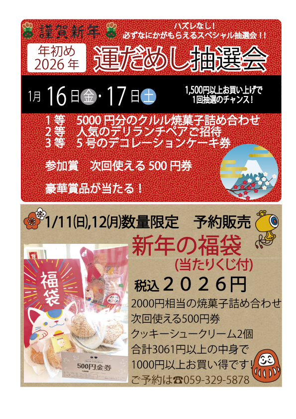 新年の福袋ご予約受付中 運だめし抽選会開催